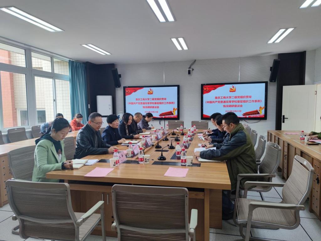 为切实推动我校二级党组织贯彻落实《中国共产党普通高等学校基层组织工作条例》,进一步提升我校基层党组织组织力,10月19日、22日和26日,学校党委副书记宋豫一行分别前往管理科学与工程学院、公共管理学院、数学与统计学院、文学与新闻学院、法学与社会学学院、环境与资源学院、工商管理学院、会计学院、艺术学院、现代国际设计艺术学院开展调研,通过实地走访和召开座谈会的方式,了解二级党组织基层党建工作。