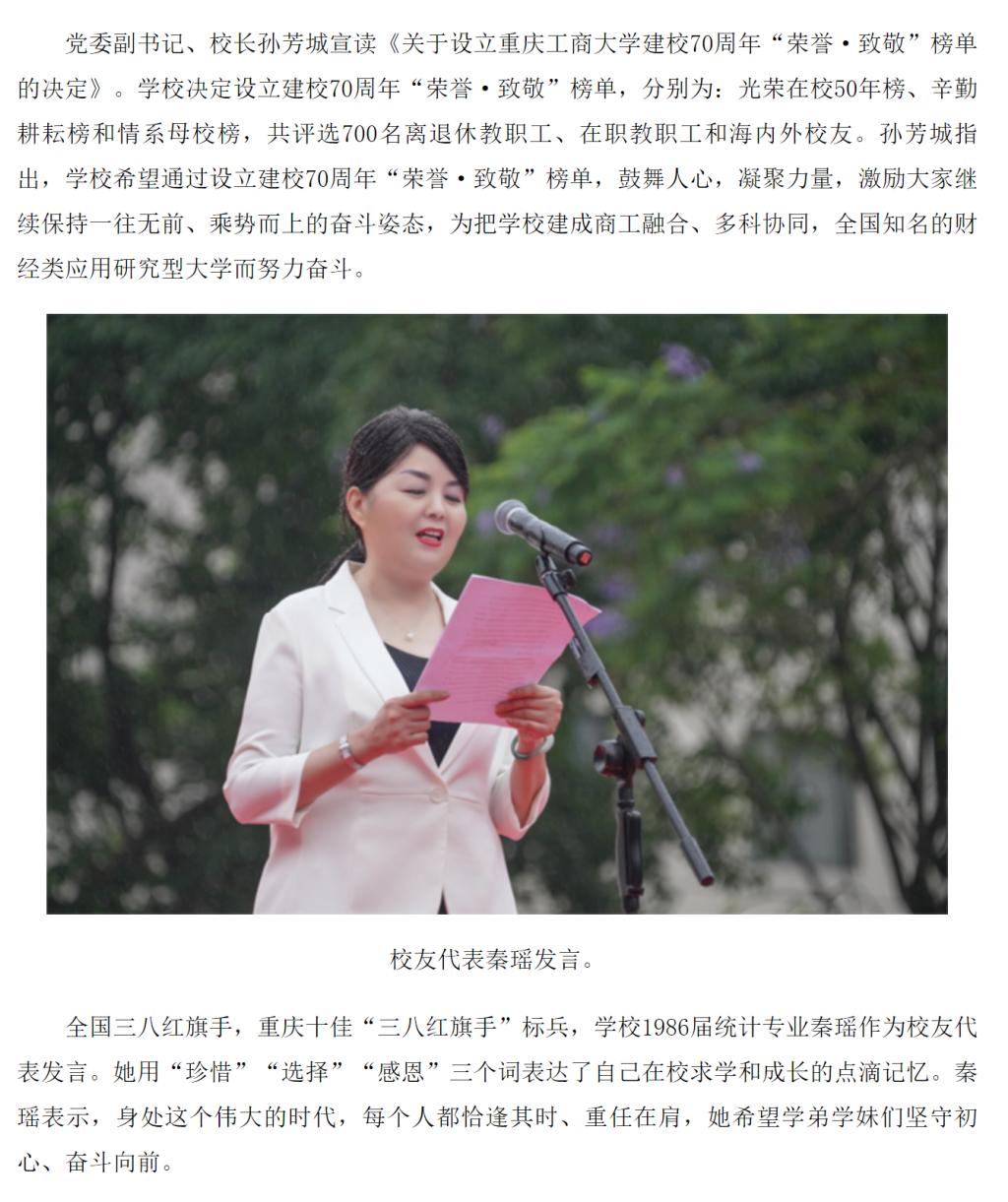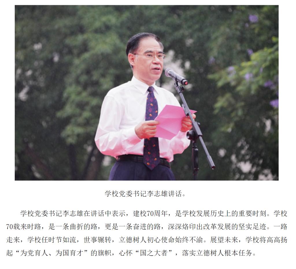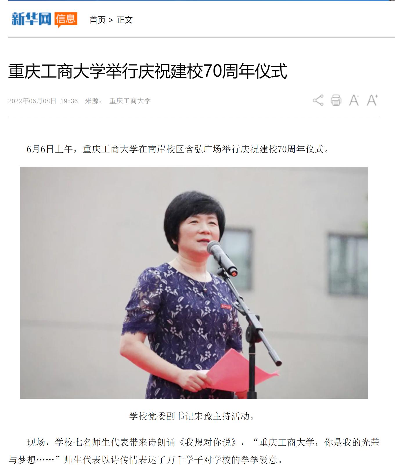 6月6日上午,我校在南岸校区隆重举行庆祝建校70周年升国旗仪式。6月8日,新华网客户端以“华体会中国有限公司官网举行庆祝建校70周年仪式”为题,进行转载报道。