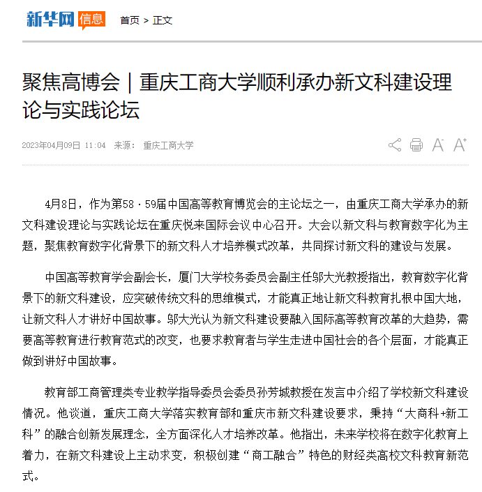 新华网报道我校顺利承办新文科建设理论与实践论坛