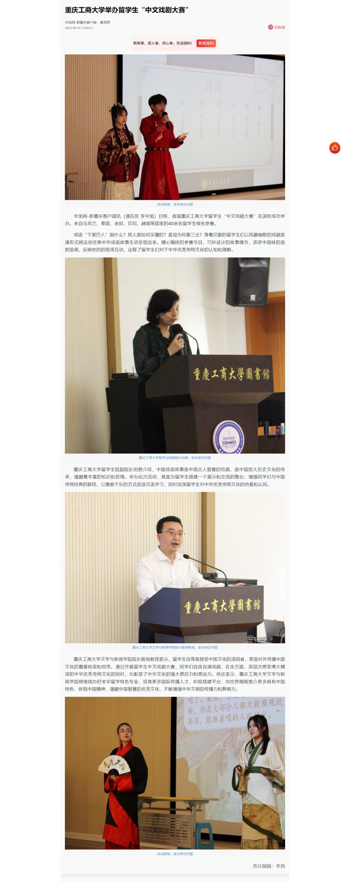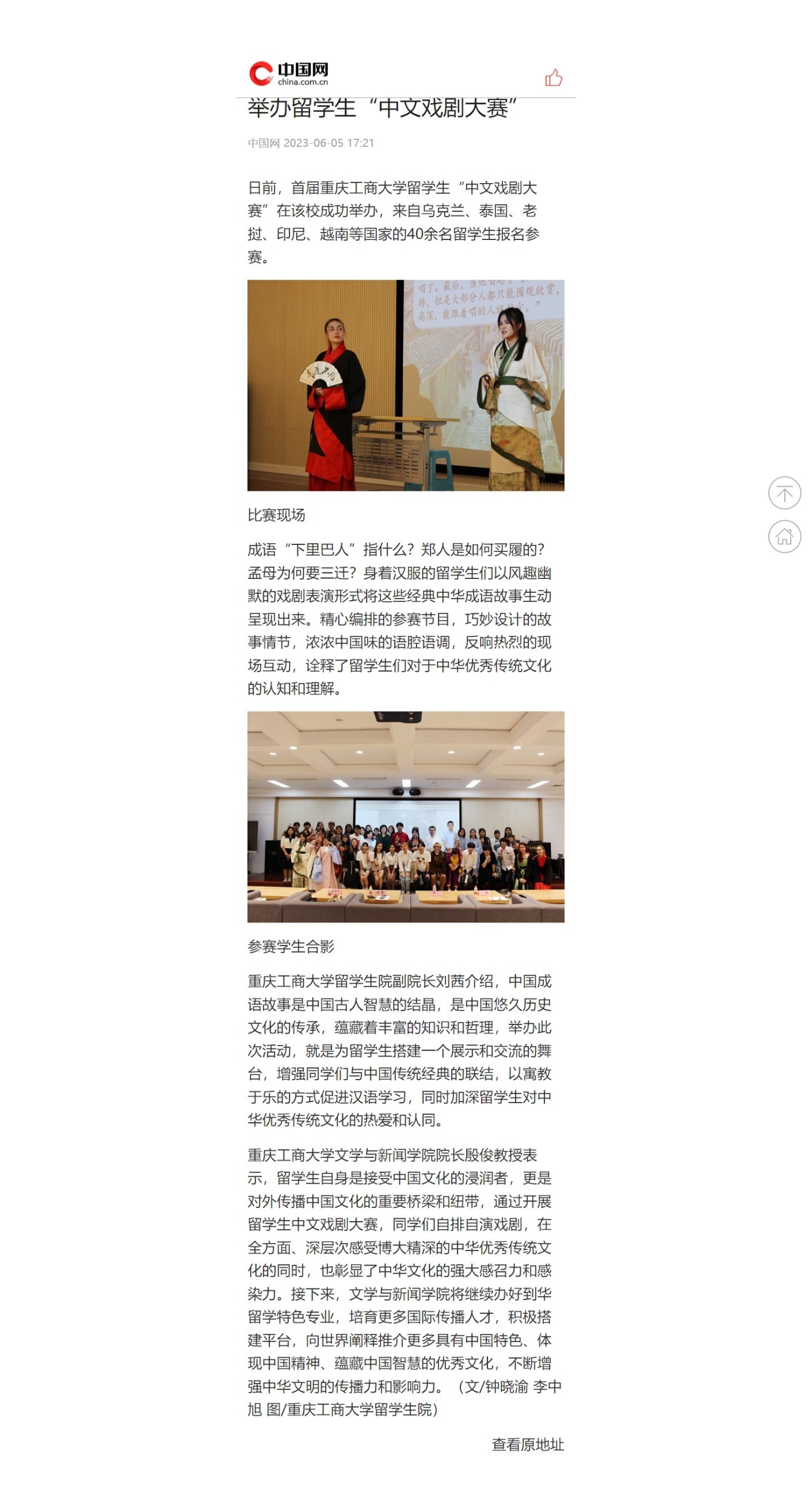 中国新闻网、华龙网、中国网等媒体报道我校留学生首届中文戏剧大赛