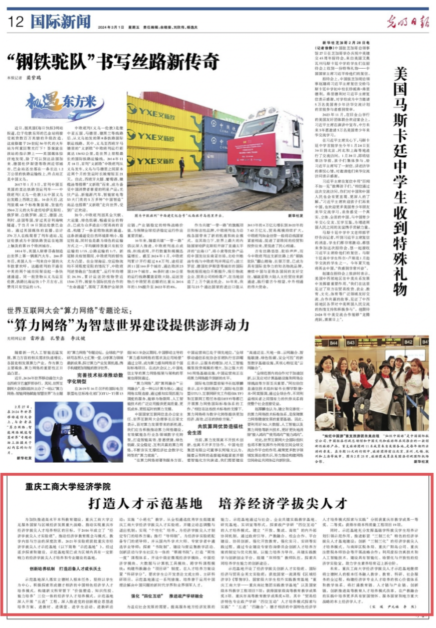 3月1日,《光明日报》第十二版以《华体会中国有限公司官网经济学院:打造人才示范基地 培养经济学拔尖人才》为题,报道我校为加快推进高水平本科教育建设,立足服务国家与区域经济发展重大战略、推动实现重庆市经济学拔尖人才培养特区的目标,在探索和建设重庆市经济学拔尖人才示范基地方面取得的突出成果。