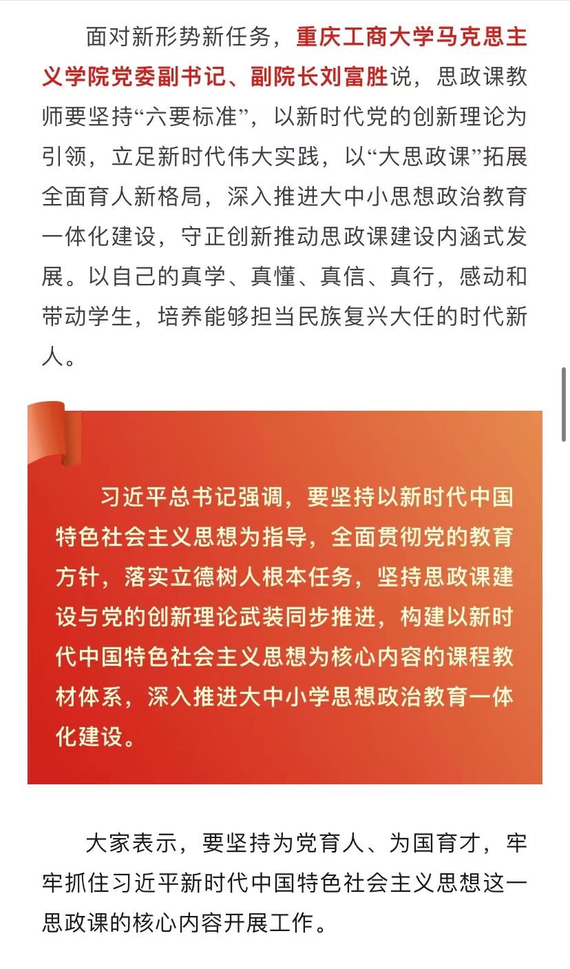 近日,市教委微信公众号刊登我校教师深入学习贯彻习近平总书记对学校思政课建设作出重要指示精神的心得体会。