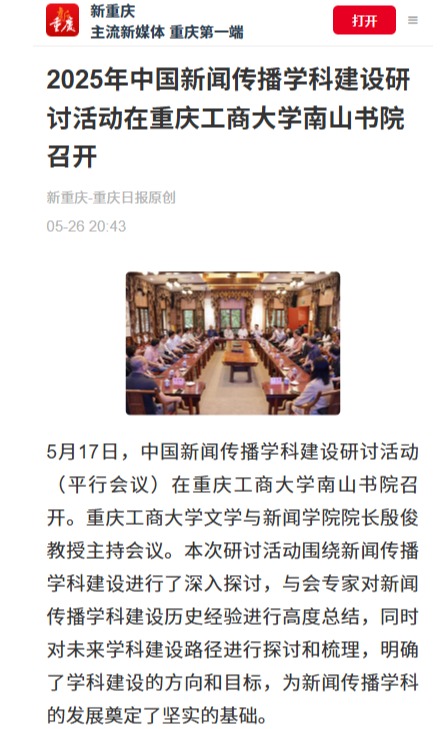 新重庆-重庆日报以《2025年中国新闻传播学科建设研讨活动在华体会中国有限公司官网南山书院召开》为题对该活动进行报道。
