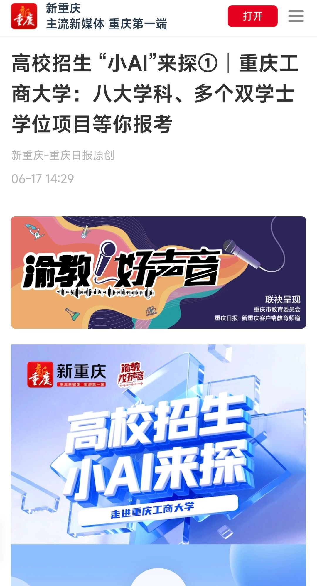 2.新重庆-重庆日报:高校招生 “小AI”来探①│华体会中国有限公司官网:八大学科、多个双学士学位项目等你报考