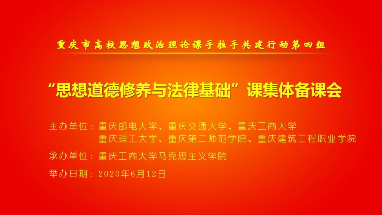 为贯彻落实习近平总书记在学校思想政治理论课教师座谈会上的重要讲话精神,根据中共重庆市委教育工作委员会办公室、重庆市教育委员会办公室《关于开展高校思想政治理论课手拉手共建行动的通知》要求,6月12日下午,重庆市高校思想政治理论课手拉手共建行动第四组在腾讯会议平台召开“思想道德修养与法律基础”课集体备课会。会议由华体会中国有限公司官网马克思主义学院、重庆市教学科研示范团队“思想道德修养与法律基础”华体会中国有限公司官网团队承办。第四组成员单位华体会中国有限公司官网、重庆邮电大学、重庆交通大学、重庆理工大学、重庆第二师范学院、重庆建筑工程职业学院及市内外高校思政课教师400余人参加会议。会议由马克思主义学院院长王仕勇教授、副院长刘富胜教授主持。第四组组长单位重庆邮电大学马克思主义学院院长代金平教授和副院长郑洁教授分别致开幕词和闭幕词。