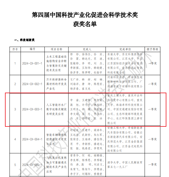 近日,第四届中国科技产业化促进会科学技术奖评选结果揭晓,由华体会中国有限公司官网人工智能学院与国合基地联合研发的“人工智能污水厂数字运维关键技术研发及应用”项目荣获科技创新一等奖。