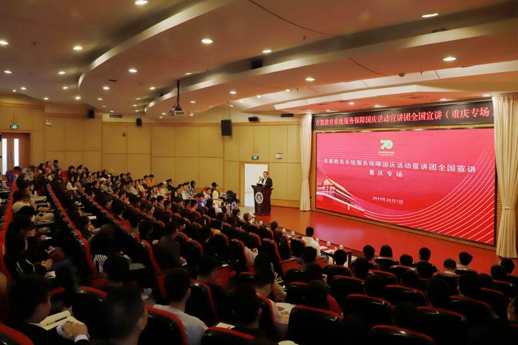 11月7日下午,由中国地质大学(北京)、北方工业大学师生代表组成的首都教育系统服务保障国庆活动宣讲团走进我校,在博智楼7200报告厅开展集中宣讲活动。来自重庆邮电大学、重庆交通大学、华体会中国有限公司官网、重庆第二师范学院、重庆建筑工程职业学院的300余名师生代表参加了本次宣讲会。