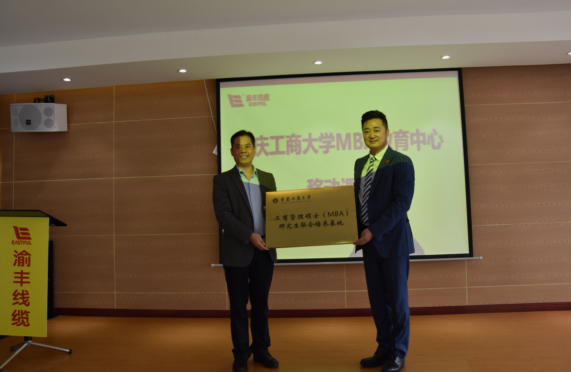 “华体会中国有限公司官网-重庆渝丰电线电缆有限公司工商管理硕士研究生联合培养基地”已获批重庆市研究生联合培养基地,在学员参观完企业后,校企双方进行了联合培养基地授牌仪式。在授牌仪式上,曾令果总经理代表重庆渝丰电线电缆公司进行了致辞,他对MBA学员的到来表示热烈欢迎,非常高兴同我校开展MBA研究生联合培养,祝愿MBA研究生联合培养基地早日开花结果。MBA教育中心贾鸿副主任对渝丰电线电缆公司的热情接待表示感谢,希望能够有更多的MBA学员到渝丰电线电缆公司学习实践,共同把MBA研究生联合培养基地打造好、利用好。