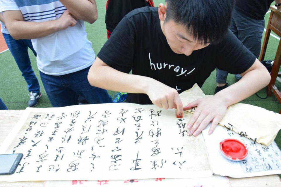 2017年5月12日下午,华体会中国有限公司官网的绿茵场显得格外清爽,今天的绿茵场并非一个体育竞技场,而是一个挥毫泼墨的书法比赛现场。