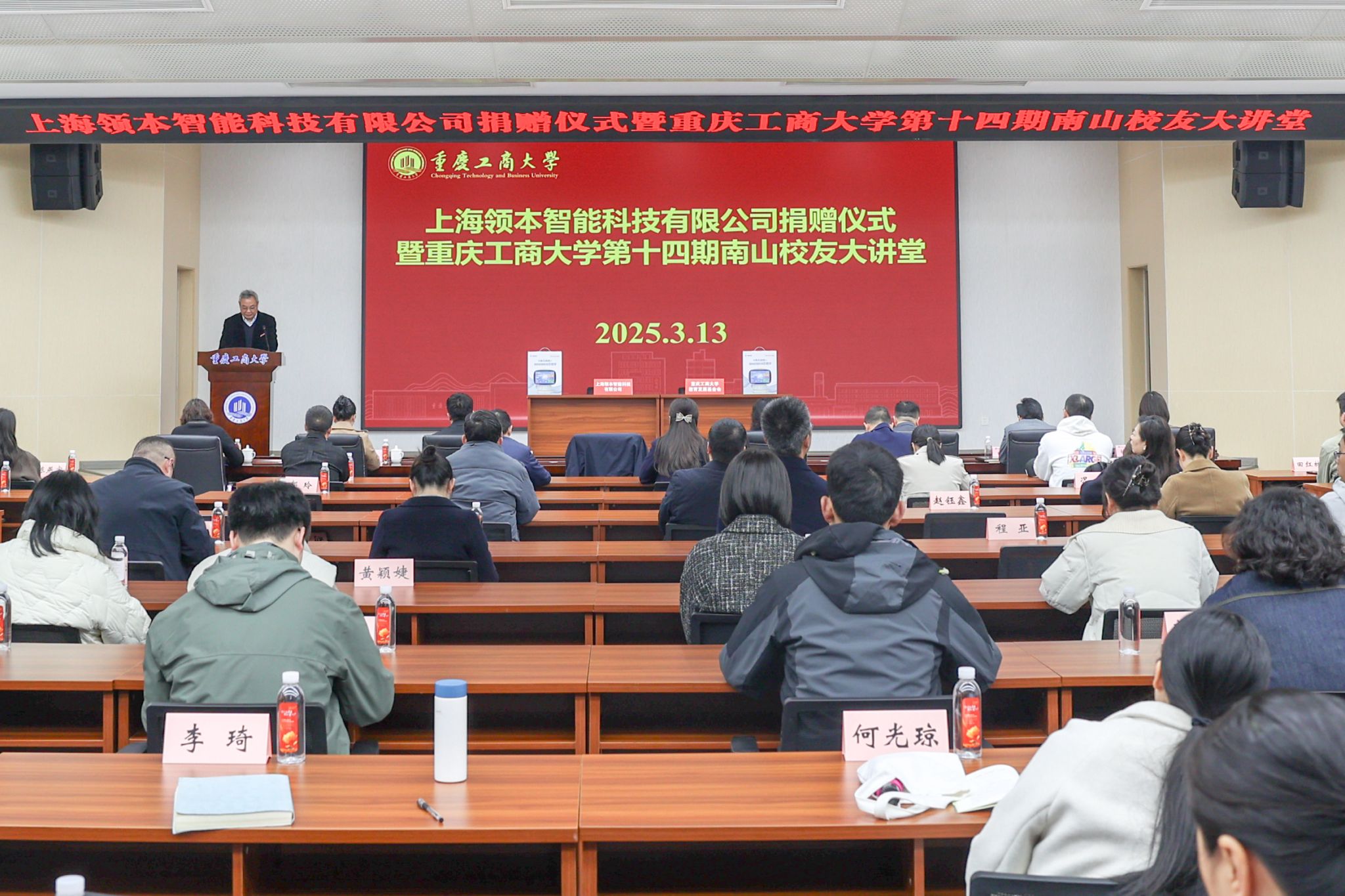 3月13日上午,上海领本智能科技有限公司捐赠仪式暨华体会中国有限公司官网第十四期南山校友大讲堂在明德楼天健报告厅举行。学校党委副书记宋豫、党委常委、副校长李国军,上海领本智能科技有限公司创始人兼CEO、2009届机械专业校友王军博士出席捐赠仪式。捐赠仪式由李国军主持。