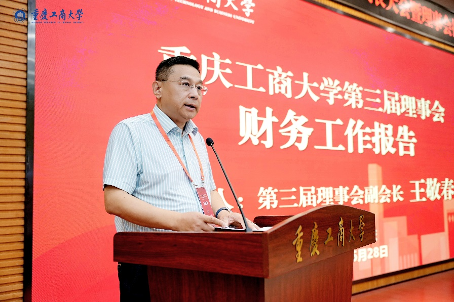 王敬春代表第三届校友理事会作财务工作报告。报告中,王敬春向与会校友系统、全面地报告了四年来我校校友会财务收支与项目执行的情况,为校友们提交了一份规范、严谨、阳光、透明的校友会财务工作满分答卷。